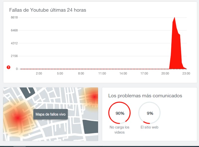 DownDetector, el sitio que marca la caída de ditintos servicios de internet. mostró un número importante de reportes de usuarios de problemas con YouTube, indicando que el problema estaba extendido - el gráfico de DownDetector llegó a su punto máximo con más de 280.000 reportes de usuarios en menos de una hora.