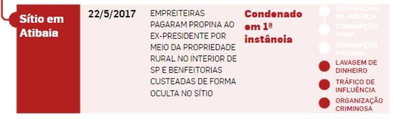 El Tribunal Regional Federal de la 4° región de Brasil (TRF-4) confirmó la condena en primera instancia del ex presidente Lula da Silva, y la amplió de 12 a 17 años, en el marco de la causa Atibaia. Es una de las dos causas por los que el ex presidente Luiz Inácio Lula da Silva fue condenado en el caso Lava Jato. En el otro caso, el del triplex de Guarujá, el líder del Partido de los Trabajadores (PT) ya había cumplido una parte de la pena de prisión (19 meses, de un total de 8 años y 10 meses) y fue liberado el pasado 8 de noviembre.