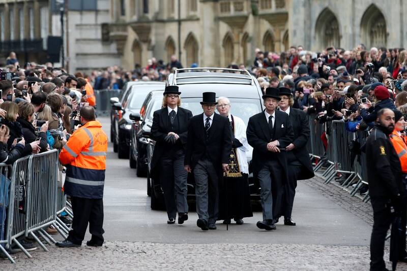 En una jornada gris y lluviosa, el servicio religioso tuvo lugar en la iglesia de la Gran Santa María, de la Universidad de Cambridge, a pesar de que el prestigioso matemático y cosmólogo, fallecido el pasado día 14 a los 76 años, era ateo.