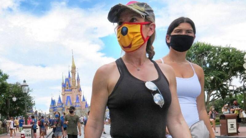 Al reabrir sus puertas luego de 160 días, el parque temático Disney World de Orlando advirtió que "existe un riesgo inherente de exposición a la Covid-19 en cualquier lugar público donde haya personas presentes" e indicó a sus visitantes que "asumen voluntariamente todos los riesgos relacionados con el parque".
