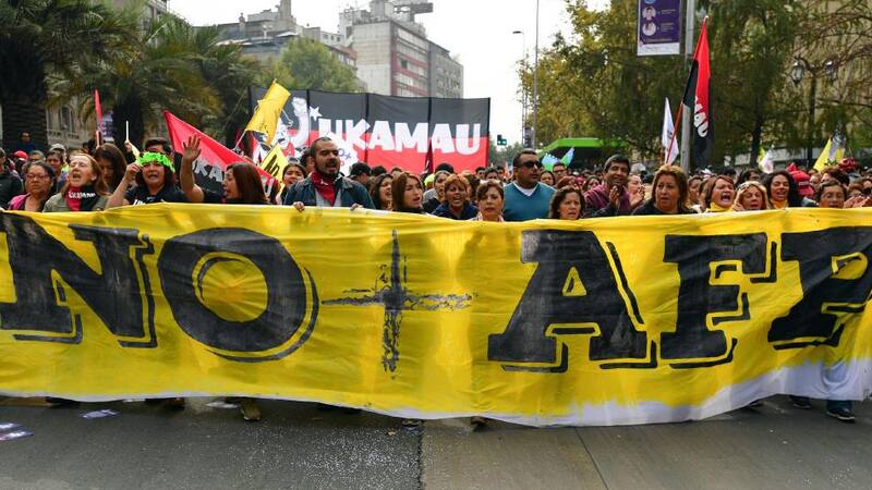La convocatoria fue hecha por la Coordinadora "No+AFP" que hace dos semanas presentó un Proyecto de Ley de Previsión. En Chile es obligatorio estar afiliado a una AFP y ahora hay seis, que compiten para captar trabajadores. El promedio de la pensión mensual pagada en enero de 2019 por las AFP fue de u$s 236 y en comparación, el salario mínimo chileno es de u$s 456.