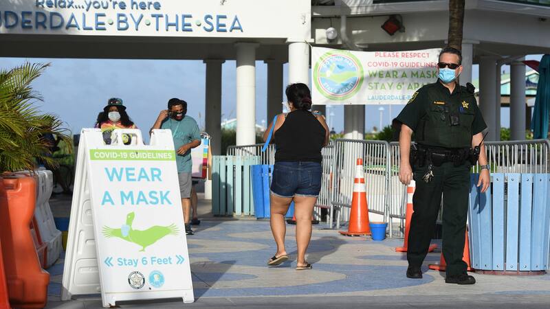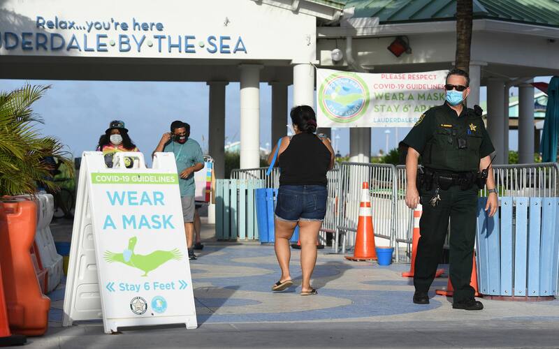 El principal foco del brote sigue estando en el sureste del estado, en los condados de Miami-Dade, Broward y Palm Beach, donde se mantienen fuertes restricciones en algunas ciudades, con toques de quedas, multas a quienes no usen tapabocas y permisos para abrir solo las terrazas de los restaurantes.