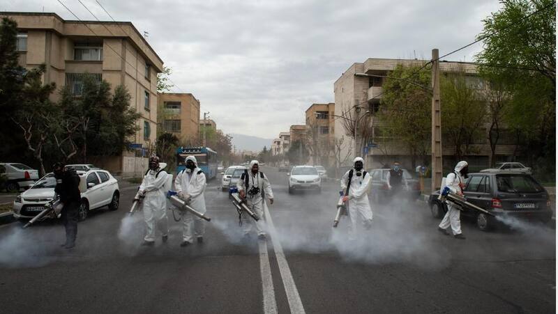Bomberos desinfectan las calles de Teherán. Bloomberg