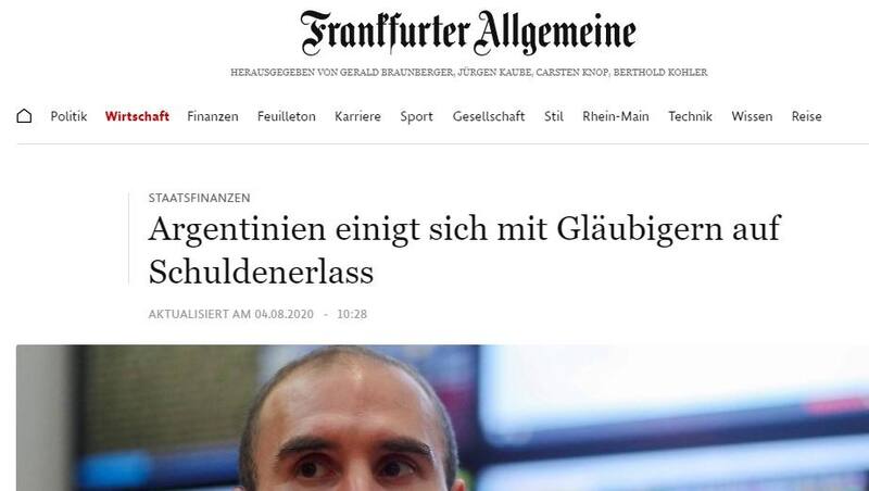 Y también el diario alemán Frankfurter Allgemeine Zeitung (FAZ) lo reportó de esa forma, destacando el acuerdo con tres grupos de acreedores.