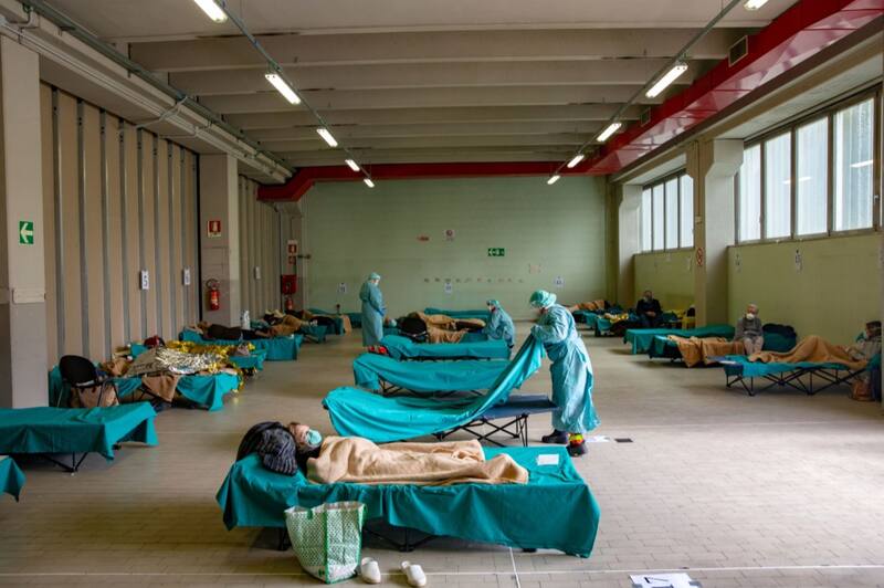Bloomberg - Espacio temporario de emergencia en Brescia, montado para rebajar la presión sobre el sistema sanitario en Italia