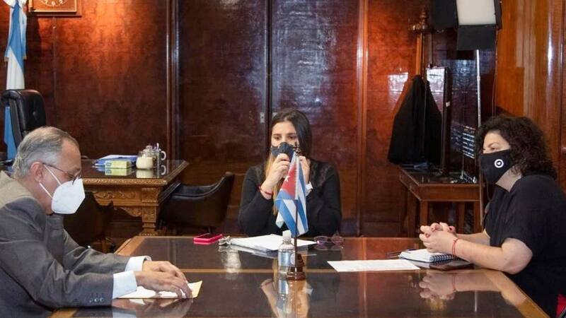 Carla Vizzotti, y la asesora presidencial Cecilia Nicolini, mantuvieron la semana pasada un encuentro virtual con el ministro de Salud Pública de Cuba, José Ángel Portal Miranda, y otros representantes del gobierno y del sector científico de ese país.