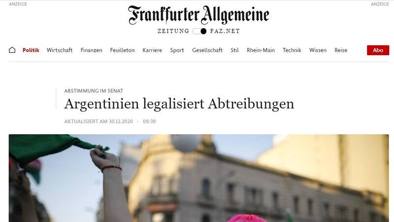 En Alemania, el diario Frankfurter Allgemeine Zeitung destacó lo controvertida que fue esta decisión hasta último momento, recordó que el Papa Francisco trató de evitarlo y que en "el futuro, en el país sudamericano estrictamente católico las mujeres podrán abortar hasta la semana 14".