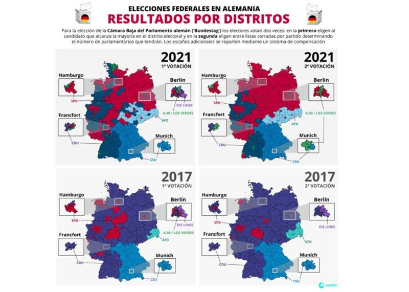En estos comicios y según los resultados provisionales, el SPD, que es el partido más antiguo de Alemania, logró cinco puntos porcentuales más que en la elección federal de 2017. Los Verdes obtuvieron el 14,8% y el FDP, el 11,5%.