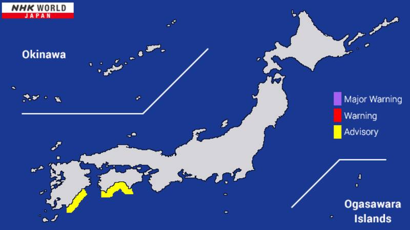 La advertencia de tsunami abarca a las prefecturas de Kochi y Miyazaki, ubicadas al suroeste del país.