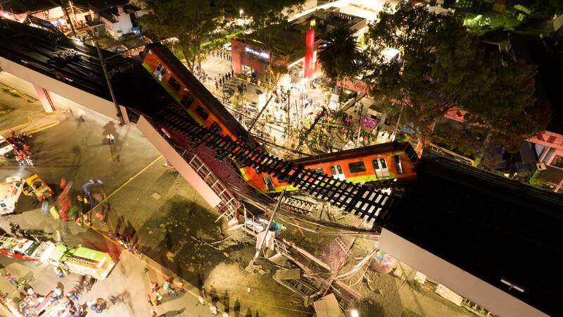 En tren de la línea 12 circulaba entre las estaciones de Olivos y Tezonco en el momento del accidente. Los vagones se precipitaron sobre los vehículos que pasaban por debajo del puente en la avenida Tláhuac, según las imágenes de las cámaras de seguridad públicas, que captaron el momento del derrumbe