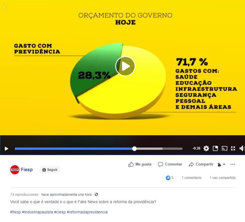Facesp alude a la sustentabilidad fiscal de Brasil y le pide al público que grabe videos de hasta 30 segundos apoyando la reforma y los mande a la entidad por whatsapp.