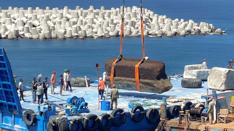 Entre los elementos extraídos hay dinteles, jambas, umbrales y losas de pavimento, con pesos que alcanzan entre 70.000 y 80.000 kilos cada uno. Estas piezas formaban parte de la entrada monumental del Faro, cuya arquitectura combinaba técnicas egipcias y griegas.