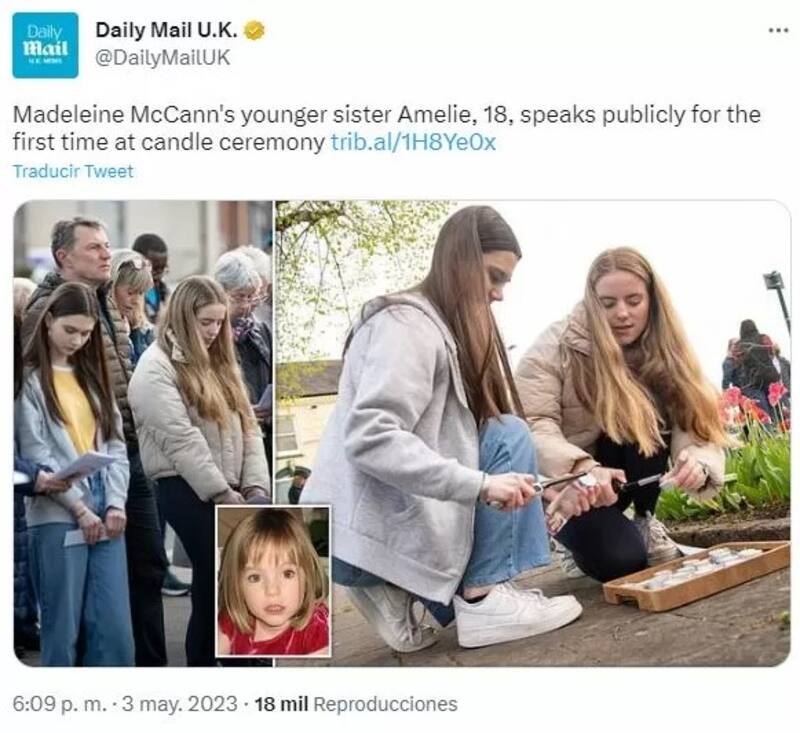 A 16 años de la desaparición de Madeleine McCann, por primera vez su hermana menor fue vista públicamente en la vigilia que la familia organiza todos los años en Rothley, Reino Unido.