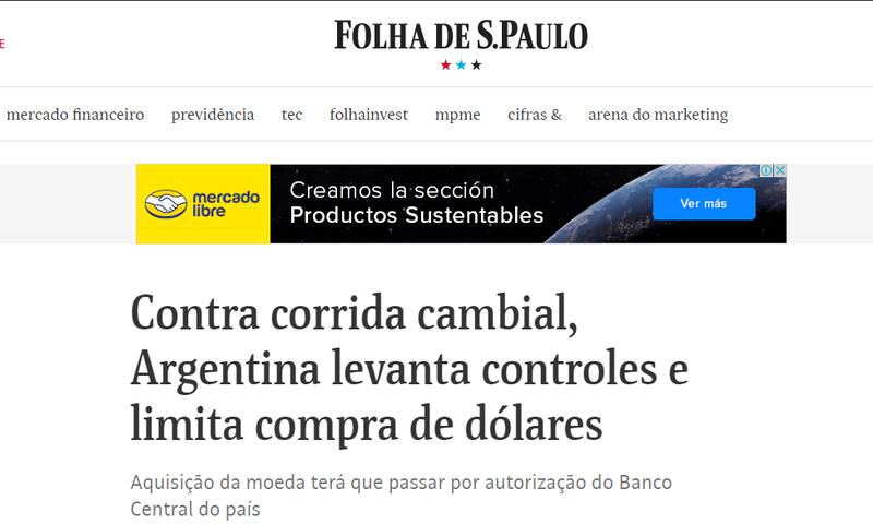 Desde Brasil, el diario Folha de S. Paulo tituló: “Contra la corrida cambiaria, Argentina impone controles y limita la compra de dólares .