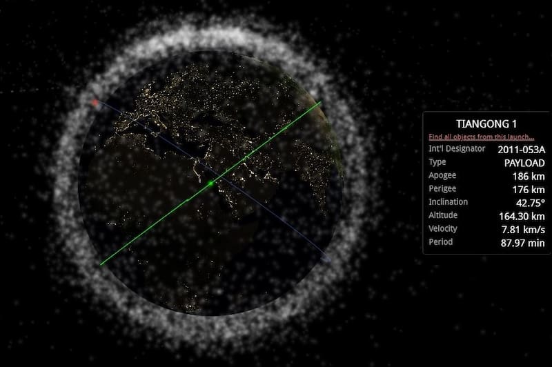 Los interesados en el destino de Tiangong-1 pueden rastrear el laboratorio orbital de la Administración China del Espacio (CNSA) —8,5 toneladas de peso y condenado a la inminente destrucción— a través de sitios web como N2YO.com y Stuff in Space.