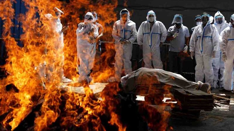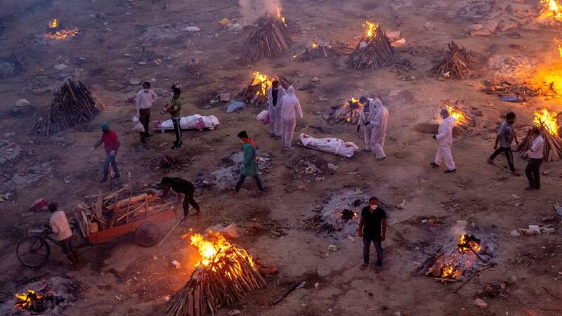 En la capital del país, Nueva Delhi, las personas que pierden a sus seres queridos recurren a instalaciones improvisadas para entierros masivos y cremaciones ante el desborde de los servicios funerarios.