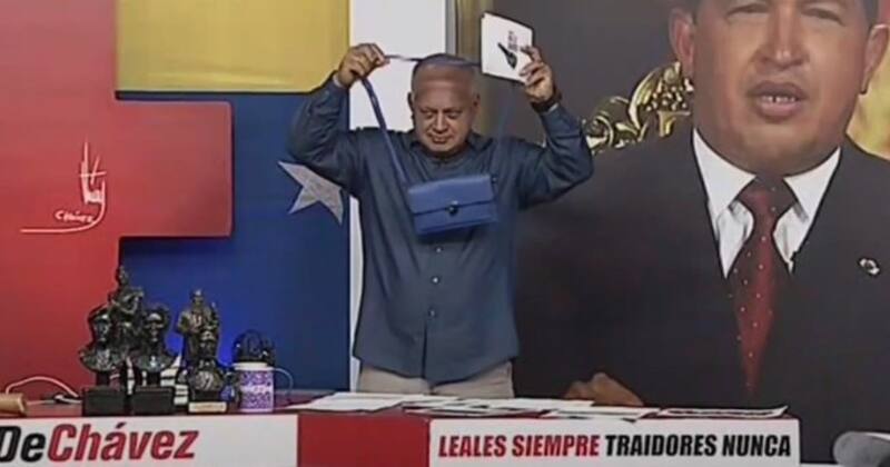 La dirigente dijo que se le había caído una cartera azul, y Cabello sacó frente a cámara una cartera azul para parodiar la situación. Entre aplausos de la platea, terminó bailando salsa.