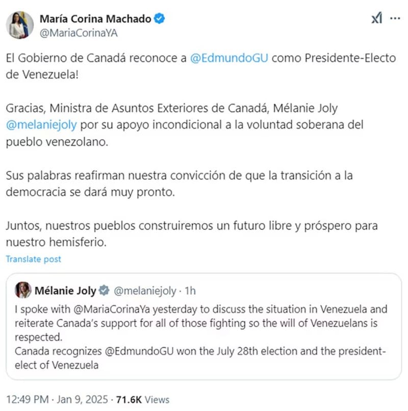 Canadá reconoció a Edmundo González Urrutia como Presidente electo de Venezuela
