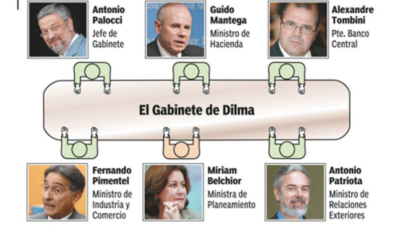Con el desafío de mantener el éxito de su popular mentor, Rousseff, una pragmática que se convertirá en la primera mujer elegida para gobernar el país, se ha rodeado de ministros moderados, muchos de ellos hombres de confianza del gabinete de Lula, como el ministro de Hacienda Guido Mantega, o bien provenientes de las filas del Partido de los Trabajadores (PT), lo que indicaría una política de continuidad en varias áreas. Pero también llamó a respetados tecnócratas para ocupar puestos clave, como el del presidente del Banco Central, Alexandre Tombini, quien asumirá en lugar de Henrique Meirelles.