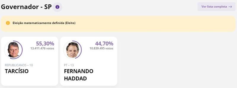 Con 34,6 millones de personas habilitadas para votar, Gomes de Fretes se impuso con el 55,30% y dejó atrás a Fernando Haddad del Partido de los Trabajadores (PT) con un 44,70%.