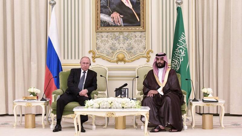 Vladimir Putin y el príncipe el príncipe heredero saudí, Mohamed bin Salmán
