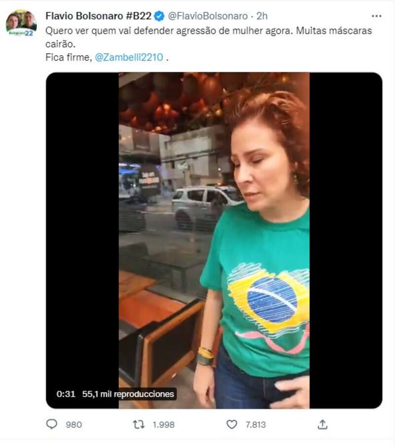 "Quiero ver quiénes defienden ahora las agresiones a las mujeres. Se cayeron muchas máscaras", dijo en un tuit, el senador e hijo del presidente, Flávio Bolsonaro.