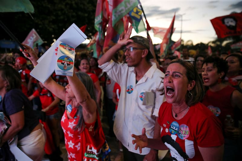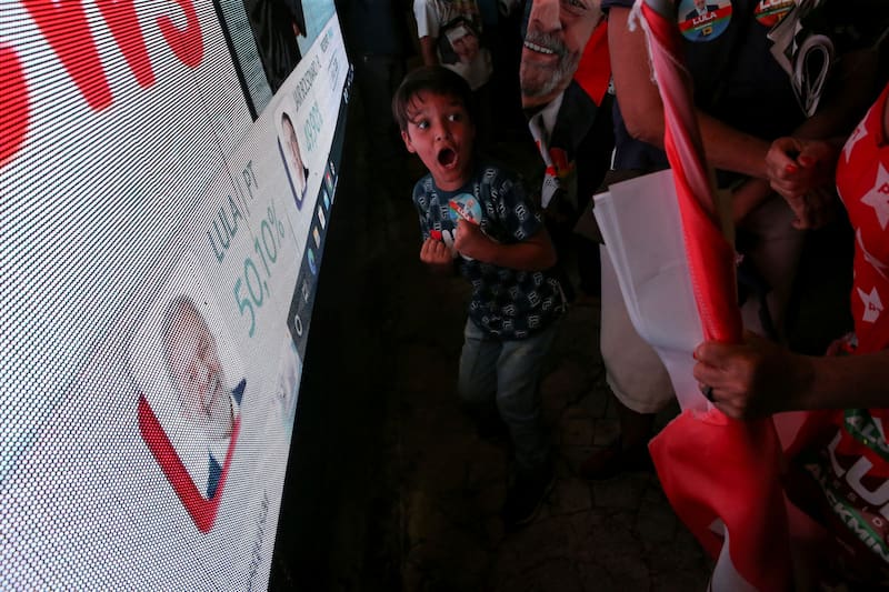 A medida que el recuento electrónico de votos avanzaba durante más de tres horas, pronto quedó claro que no se repetirían las aplastantes victorias de Lula en 2002 y 2006. Esta vez, su victoria sobre el candidato de la derecha, Jair Bolsonaro, se ha conseguido con mucho esfuerzo. Al final, sólo 1,8 punto porcentual separaron a los dos hombres.