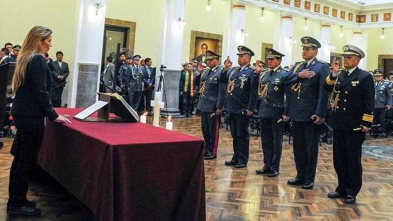 En su primer día como presidenta interina, la ex senadora por la oposición Jeanine Áñez, decidió reemplazar al comandante de las Fuerzas Armadas, Williams Kaliman –el mismo que le había sugerido a Evo Morales que renuncie a la presidencia– por el general Carlos Orellana quien, a su vez, llamó a deponer las "actitudes beligerantes" y evitar "fragmentar la unidad nacional y se derrame sangre".