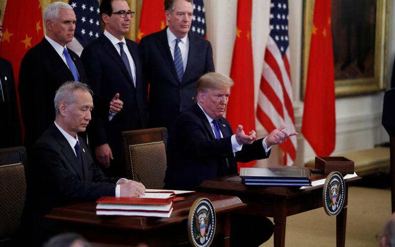 Donald Trump, y el vicepremier chino, Liu He, rubricaron hoy en la Casa Blanca, el acuerdo de Fase Uno con el que confluyen formalmente casi dos años de enfrentamiento comercial, y destacaron que es un pacto que beneficia a Estados Unidos, China y a todo el mundo.