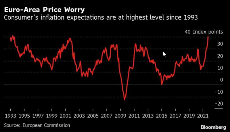 Hacía mucho tiempo que los consumidores europeos no estaban tan preocupados por la inflación. Tanto como desde 1993, según los últimos datos de la Comisión Europea. Un dato difícil para el Banco Central Europeo (BCE), que hoy realizó su reunión de política económica.