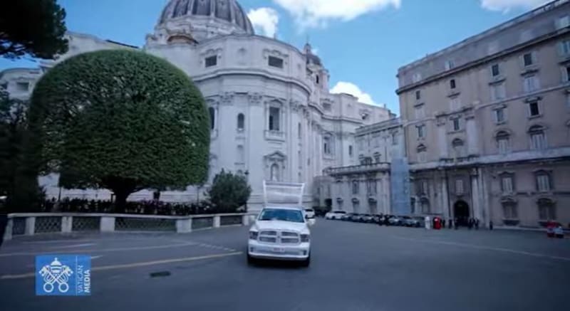 El traslado duró cerca de media hora, desde la Plaza de San Pedro, en donde se realizó la Misa Exequial. Fue en un papamóvil adaptado para esta ceremonia fúnebre para que que se pueda ver el féretro y que el pontífice usó en un viaje a Oriente.