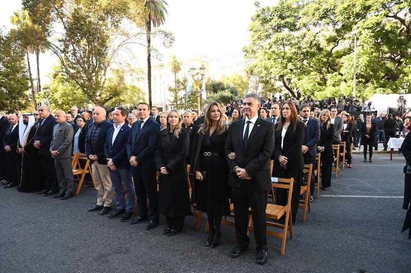 En el lugar también se encuentran la vicepresidenta Victoria Villarruel, a quien el ex ministro de Economía saludó con un apretón de manos,y el jefe de Gobierno porteño Jorge Macri.