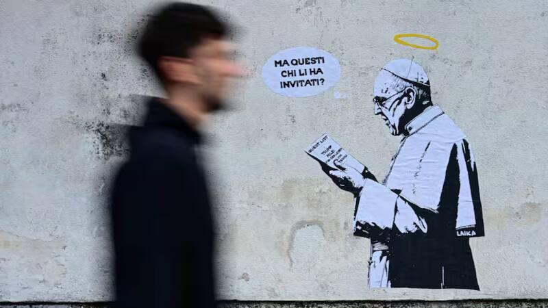 El polémico grafiti sobre el funeral del papa Francisco que apunta contra Javier Milei y Donald Trump