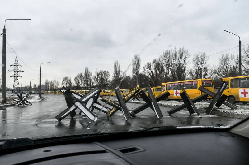 El Pentágono señaló que la resistencia ucraniana está obstaculizando al convoy, y lo que la prensa está relevando en el lugar son las barricadas, que van desde unas precarias hasta otras que atraviesan autobuses en las rutas y unas más sofisticadas, con obstáculos antitanque, conocidos como erizos checos.