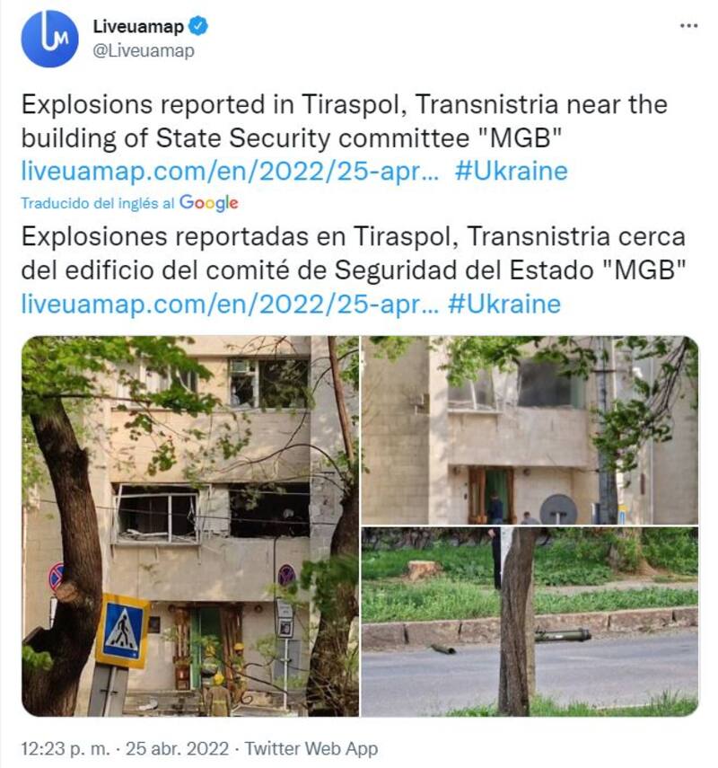 Una serie de explosiones sacudieron el edificio del Ministerio de Seguridad del Estado de Tiraspol, en Transnistria, Moldavia, según reportó un corresponsal del medio ruso Sputnik. De confirmarse esta información, el ataque se convertiría en el primero en un tercer país.