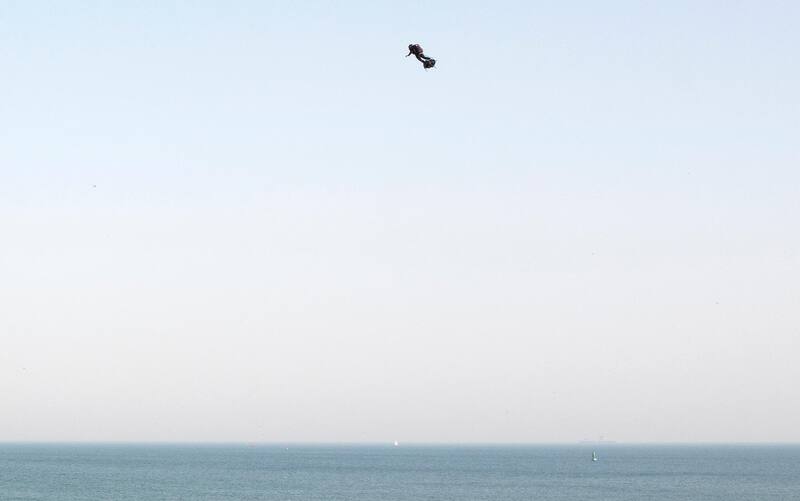 Este artefacto, llamado Flyboard e inventado por el propio Zapata, está propulsado por cinco turborreactores de aire que permiten despegar y avanzar hasta llegar a los 190 km/h, con una autonomía de unos diez minutos.