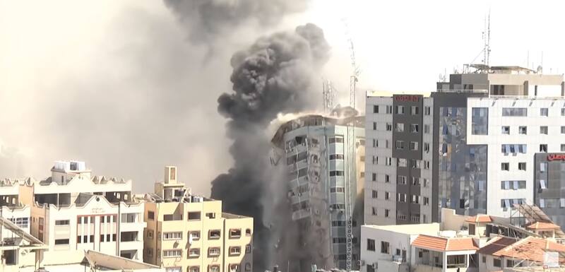 El ejército israelí destruyó un bloque de pisos en la ciudad de Gaza que albergaba las operaciones de medios como la agencia estadounidense Associated Press y la cadena qatarí Al-Jazeera, así como otras oficinas y apartamentos.