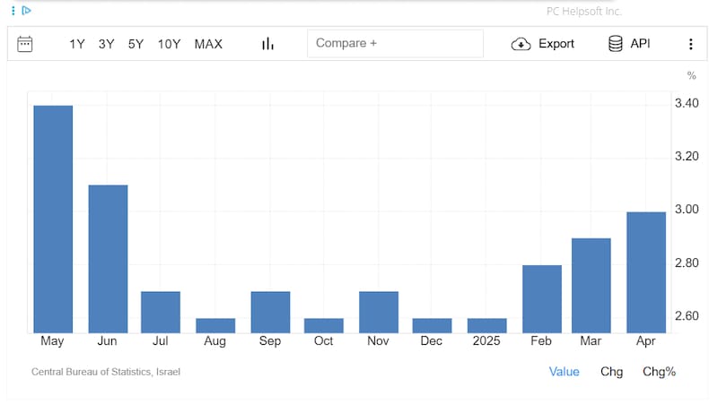 El Fondo Monetario Internacional (FMI) proyecta para Israel un crecimiento del PBI real del 3,3% para 2025, una cifra que, si bien positiva, representa una desaceleración respecto a años anteriores, según cita un informe de CNN. La inflación, por su parte, se mantiene por encima del objetivo del Banco de Israel, con un 3,6% interanual en abril de 2025.