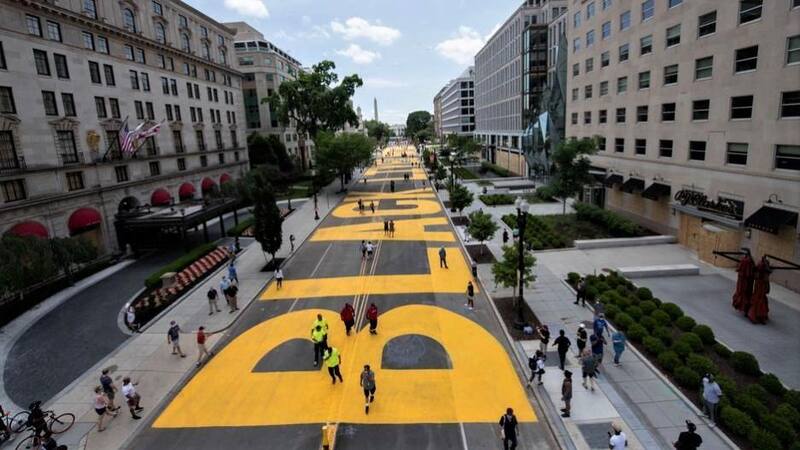 La alcaldesa de Washington, Muriel Browser, rebautizó una calle frente a la Casa Blanca como 'Black Lives Matter Plaza' e hizo pintar el eslogan en enormes letras amarillas en la calle, en una aparente recriminación por la respuesta militarista de Donald Trump a las protestas por la brutalidad policial en Estados Unidos.