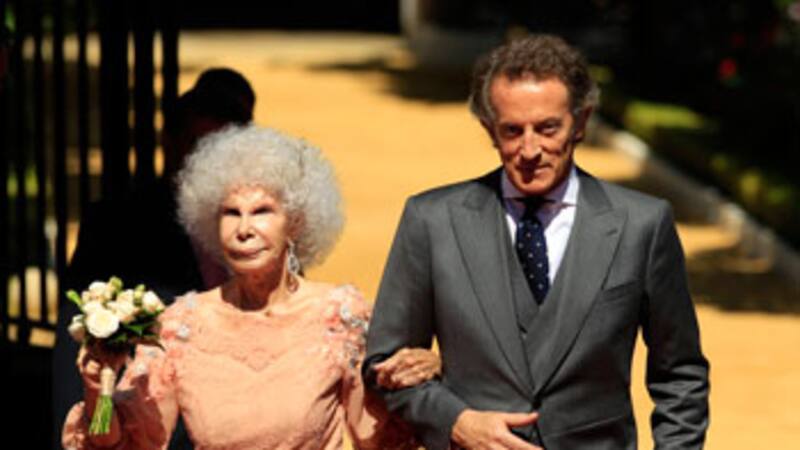 La duquesa de Alba, Cayetana Fitz-James Stuart, de 85 años, la aristócrata con más títulos en el mundo y una de las mujeres más ricas de España, contrajo hoy matrimonio con el funcionario del Estado Alfonso Díez, de 60, en la ciudad de Sevilla (sur).
