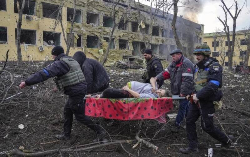 La cámara del ucraniano captó una imagen de una mujer embarazada que es transportada en camilla con el vientre lleno de sangre en la ciudad de Mariúpol bombardeada por los rusos.
