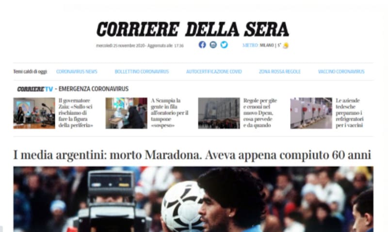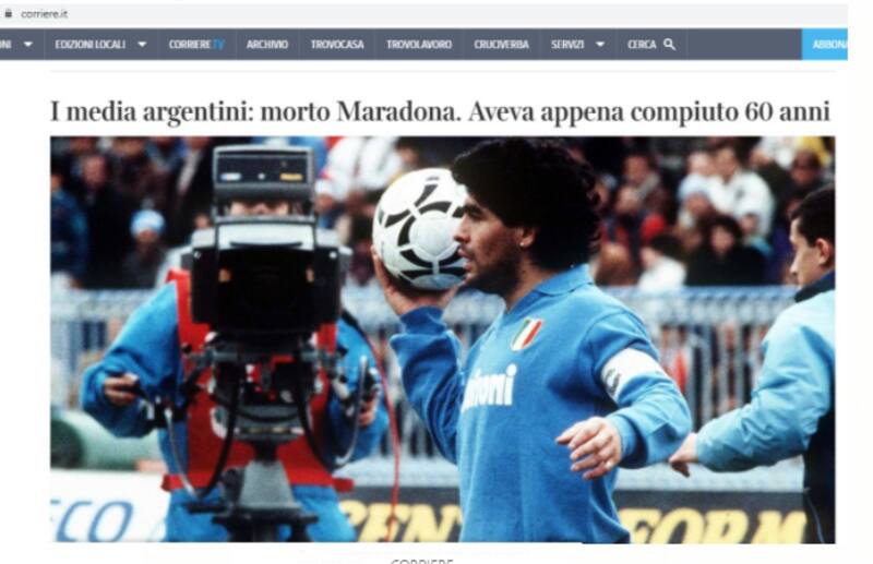 En Italia, donde Maradona fue ídolo con el club Napoli donde jugó durante siete años, la repercusión fue inmediata.