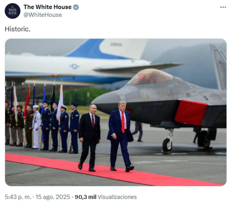 "Histórico". La cuenta oficial de la Casa Blanca posteó esta imagen mientras continúa la cumbre entre los líderes de Estados Unidos y Rusia.