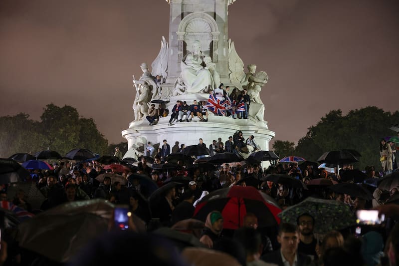 Pese a la lluvia, tanto británicos como turistas se están comenzando a reunir frente al Palacio de Buckingham luego del comunicado respecto a la salud de la Reina Isabel II.