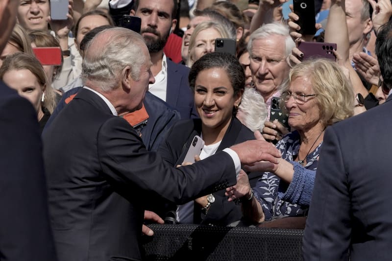 Una mujer desconocida rompió el protocolo y besó al nuevo rey Carlos III de Inglaterra