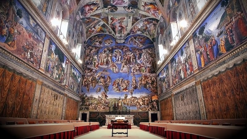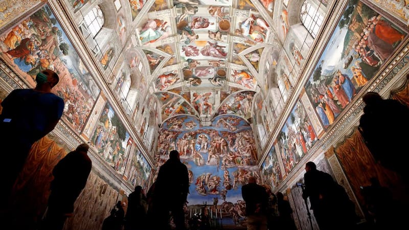 También serán testigos de momento los célebres frescos del techo, que fueron encargados a Miguel Ángel por Julio II y que muestran escenas del Antiguo y Nuevo Testamento de la Biblia, incluyendo "La creación de Adán", en la que Dios extiende su dedo para tocar la mano extendida del primer hombre.