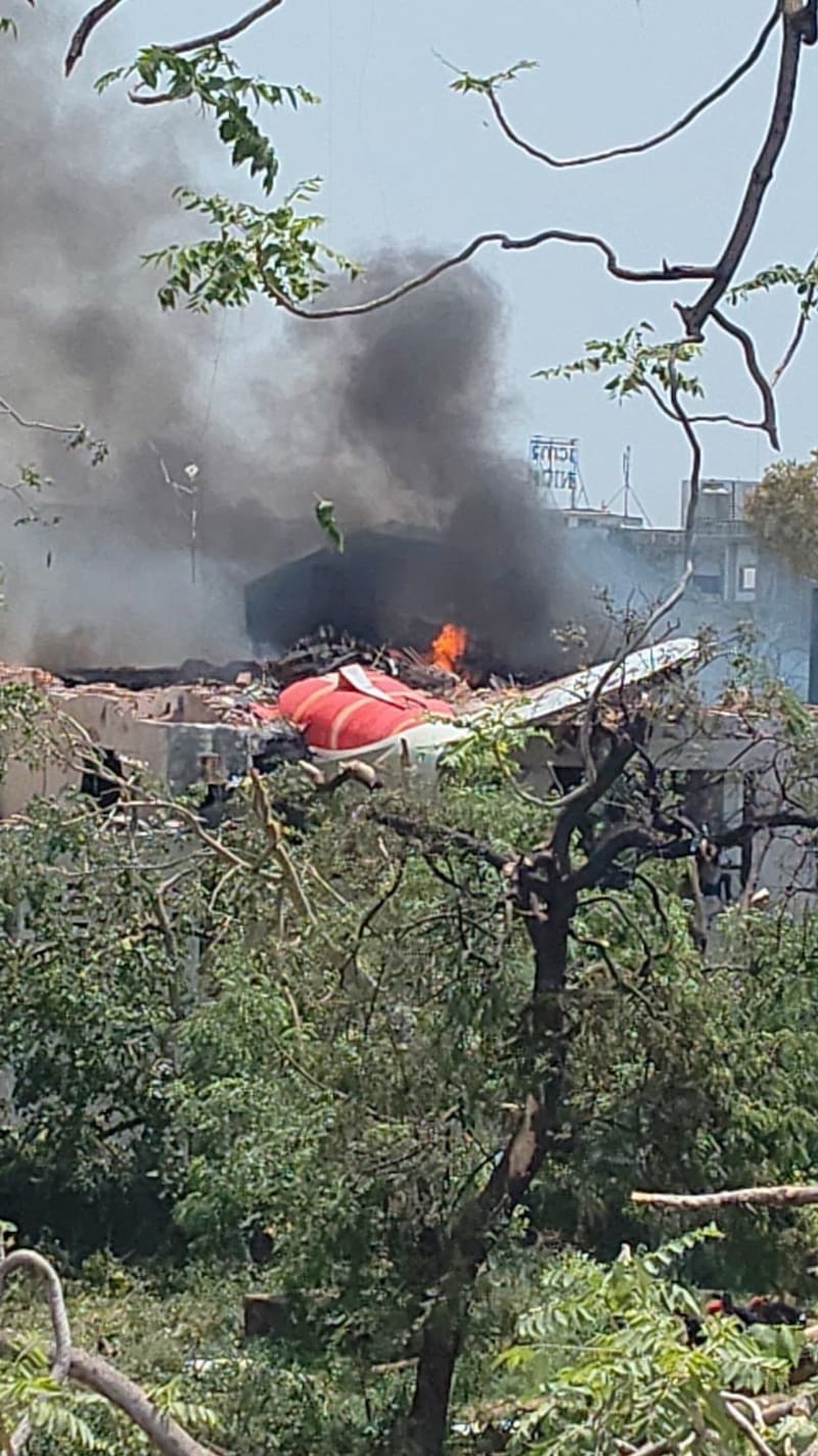 Una densa columna de humo negro se hizo visible poco después en el lugar del accidente, en la zona de Meghaninagar, y las autoridades cortaron varias autopistas de la zona para facilitar el acceso de los equipos de rescate.