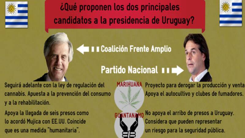 El sucesor del presidente izquierdista José Mujica tendrá que tomar decisiones sobre temas sensibles como la reciente legalización de la producción y venta de marihuana y el refugio ofrecido a presos de la base estadounidense en Guantánamo.