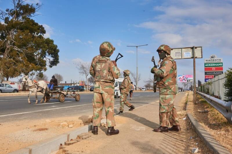 La ministra de Defensa y Veteranos Militares, Nosiviwe Mapisa-Nqakula, dijo que pidió 25.000 soldados -inicialmente pidieron 4000, luego 10.000- para reforzar la seguridad en las zonas donde hubo disturbios. Y aseguró que el gobierno está tratando de garantizar la visibilidad militar de patrullas de vehículos y helicópteros.