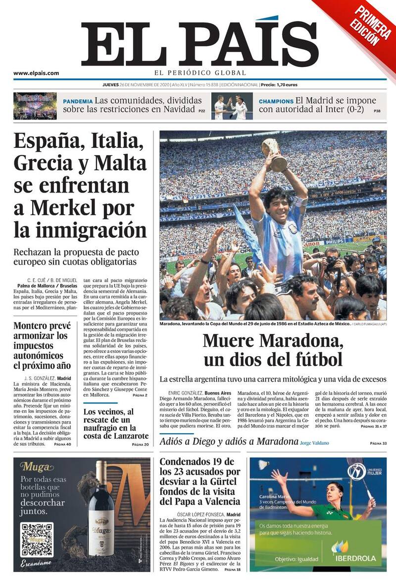 Con enormes titulares y fotografías, medios de comunicación de todo el mundo presentaron este jueves en su tapa del diario la muerte de Diego Armando Maradona, en el marco de la conmoción que provocó su inesperada partida.